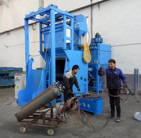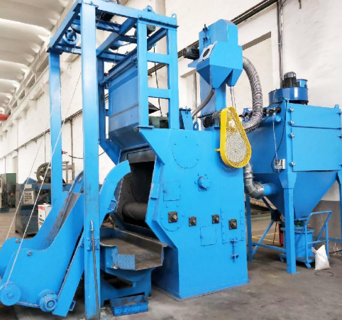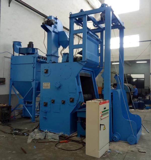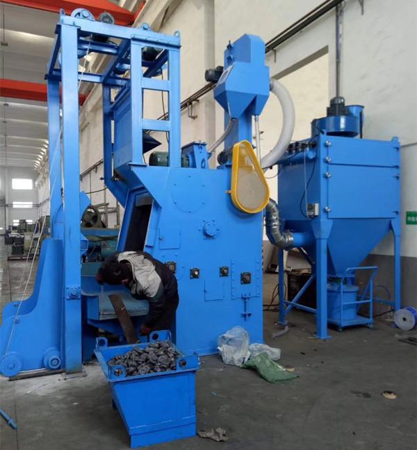 Tumble blasting machine with rubber belt is ideal for processing mass-produced parts, which can be tumbled and exposure of all surfaces to the blasting stream, with high cleaning efficiency. Using high speed shots accelerated by rotation impeller hit on surface of work pieces, to get the good cleaning result.